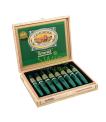 Los puros La Aurora Preferidos 1903 representan el pináculo de la fabricación de puros, con los codiciados tubos Preferidos Emerald, lujosamente lisos. La envoltura de Sumatra ecuatoriana envejecida en roble cubre cada 5" x 54 Perfecto, ocultando un aglutinante dominicano y una mezcla de tabacos de relleno dominicanos, nicaragüenses, peruanos y brasileños.