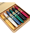 La serie Preferidos 1903 de La Aurora es una legendaria colección de exquisitos puros Perfecto de 5" x 54 " con los mejores tabacos añejos de todo el mundo envueltos en una variedad de hojas de envoltura envejecidas en roble. Los La Aurora Preferidos Treasures Tubos muestran uno de estos 6 extraordinarios puros súper premium: